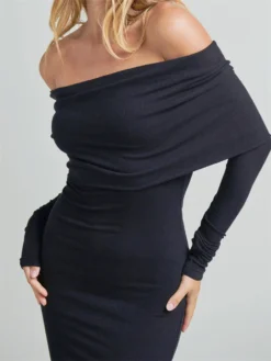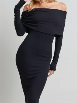 Women Autumn Long Dress Long Sleeve Off Shoulder Ruched Bodycon Pencil Dress for Evening Dress Party Elegant Chic Dresses