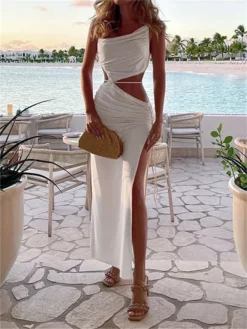 Women Long Dress Sleeveless Spaghetti Strap Hollow Out Split Dress Evening Party Elegant Sexy Dresses Summer